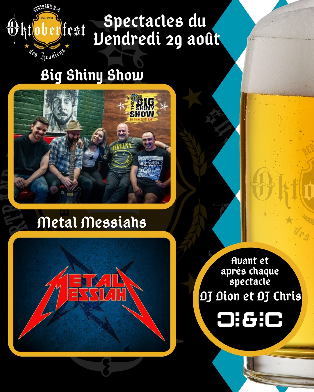 L’oktoberfest des Acadiens vous présente le groupe Big Shiny Show et Metal Messiahs pour vous faire danser sous le Grand Chapiteau
